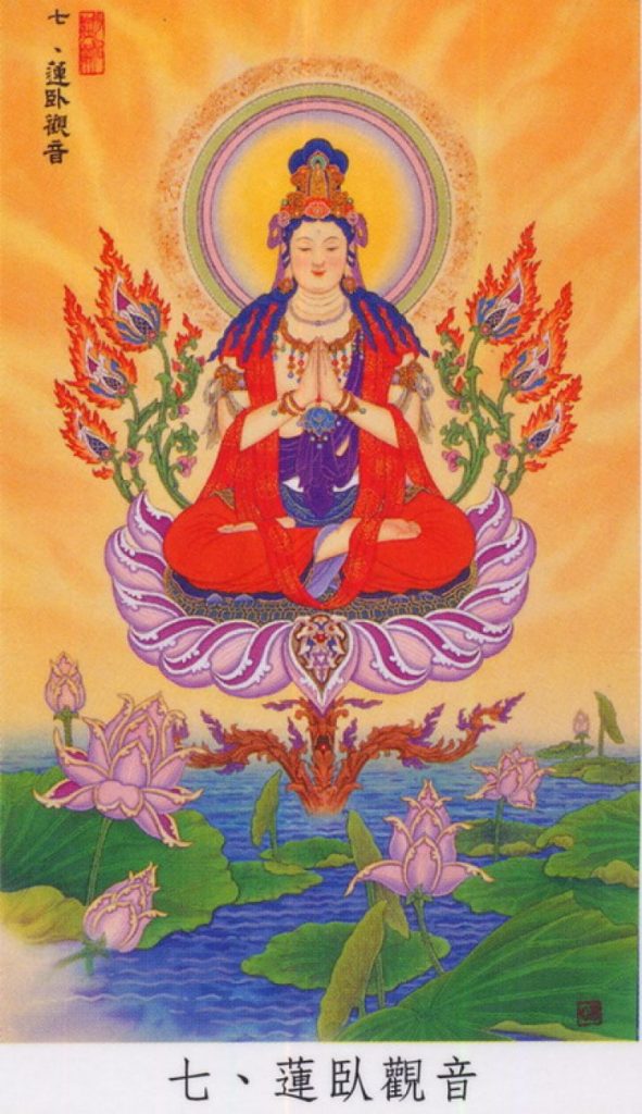 莲卧观音是三十三观音相之一,观音菩萨卧坐于莲叶之上的法相。