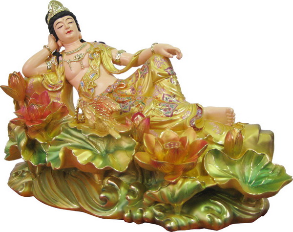 游戏观音 , 在三十三观音中位列第五。 法相安坐云端之上,表观世音菩萨的教化圆通无碍,不拘时处,示现游戏自在。 游戏观音因乘云作游戏坐姿,故有此名。 游戏坐又称安逸坐,是佛教造像中比结跏趺坐还随意自在的一种坐姿。